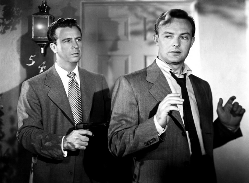 En moins de temps qu’il n’en faut pour le dire, Mona pleurniche dans le giron de John dans la lumière tamisée d’un bar à cocktails. En n’importe quelle autre occasion, Forbes remplirait scrupuleusement son dossier pour l’assurance. Mais là, sa vie bien ordonnée trébuche sérieusement dans Pitfall. Il est censé confisquer pour le compte d’Olympic Mutual Insurance tous les cadeaux que Bill Smiley a fait pleuvoir sur sa maîtresse Mona. Tout comme Chris Cross (Christopher Cross est le personnage joué par Edward G. Robinson dans Scarlet Street), Smiley a détourné des fonds de sa société pour financer ses gages de dévotion, mais il s’est fait pincer et devra mijoter un an en se demandant si Mona va l’attendre.