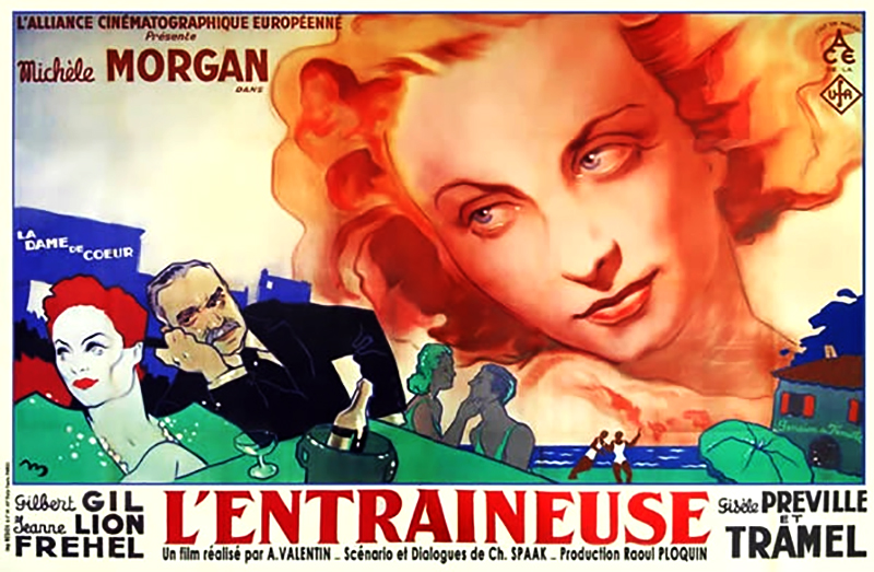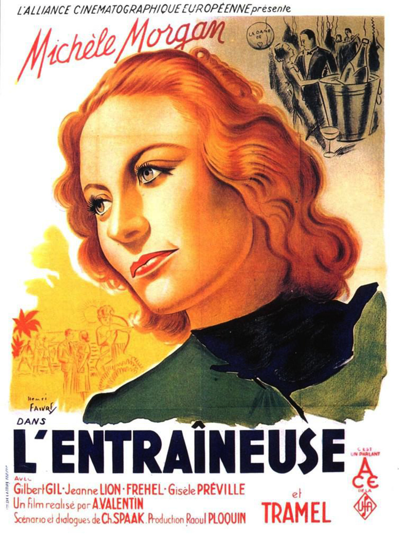Avant d’être un scénariste notoire, Albert Valentin fut l’assistant de René Clair. En 1935, entre deux versions françaises de succès allemands qu’il dirigeait à Berlin, il put tourner un moyen-métrage, Le Taxi de Minuit avec Gaston Modot et Pola Illéry qu’il avait connus vedettes de Sous les Toits de Paris. Ce fut plus qu’un succès d’estime, et, en 1938, après avoir collaboré au scénario de L’Etrange Monsieur Victor de Grémillon, il tourna deux films dans les studios de la U. F. A. à Berlin, L’Entraineuse, qui devait sortir après les accords de Munich, L’Héritier des Mondésir, qu’il termina en hâte, talonné par la mobilisation et la déclaration de guerre. Ces deux œuvres eurent une mauvaise sortie : l’époque n’était pas favorable aux films produits par Berlin, fussent-ils camouflés sous pavillon français. La critique passa donc sous silence les performances de Fernandel, costumé, maquillé et travesti pour vingt rôles différents dans L’Héritier, et traita avec beaucoup de réticences l’amertume et la pudeur qui donnait son accent à L’Entraîneuse. Le film aurait dû plaire pourtant avec la description acide de la boîte de nuit – initialement, l’histoire s’appelait « Tabarin » – s’opposant au climat fade et douillet de la pension de famille, avec, surtout, cette étrange fierté, cette allure à la fois altière et lasse dont Michèle Morgan pare son personnage. Le long regard silencieux qu’elle promène, à la fin du film, sur un paysage où elle crut au bonheur reste une minute privilégiée dans un film caustique et parfois méchant. C’est un mélo. Mais discret et efficace. Finalement, compte tenu des deux exercices de voltige que constituent Marie-Martine et La Vie de Plaisir (1943), spectacles brillants, amusants, sarcastiques, avec des virtuosités dans le scénario, L’Entraîneuse, qu’on aurait pu aussi intituler « Les Dernières Vacances », reste sans doute le film auquel croyait le plus Albert Valentin.