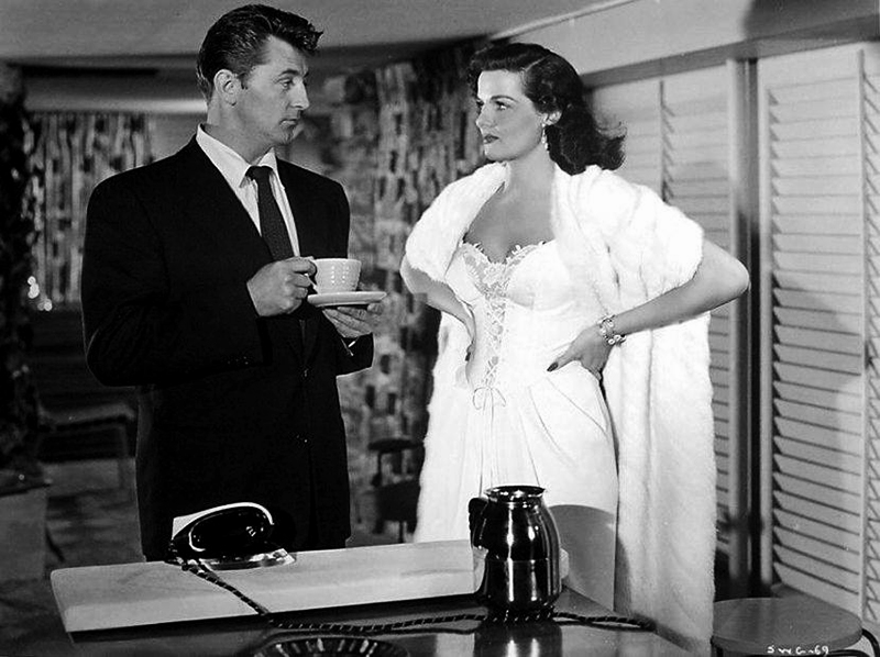 En 1950, Robert Mitchum avait déjà à son actif quelques uns de ses meilleurs films, comme Pursued (La Vallée de la peur) de Raoul Walsh ou Out of the Past (La Griffe du passé) de Jacques Tourneur, réalisés tous deux en 1947, mais il est encore jeune et au sommet de sa célébrité, son contrat avec la R.K.O. courant jusqu’en 1954. Les studios se donnaient désormais le temps et les moyens de mettre en valeur ce sex-symbol dans des grosses productions, aux côtés de partenaires féminines à la hauteur. Il venait de terminer le tournage de My Forbidden Past (Cœurs insondables), réalisé par Robert Stevenson avec Ava Gardner et sa rencontre à l’écran avec Jane Russell était inéluctable.