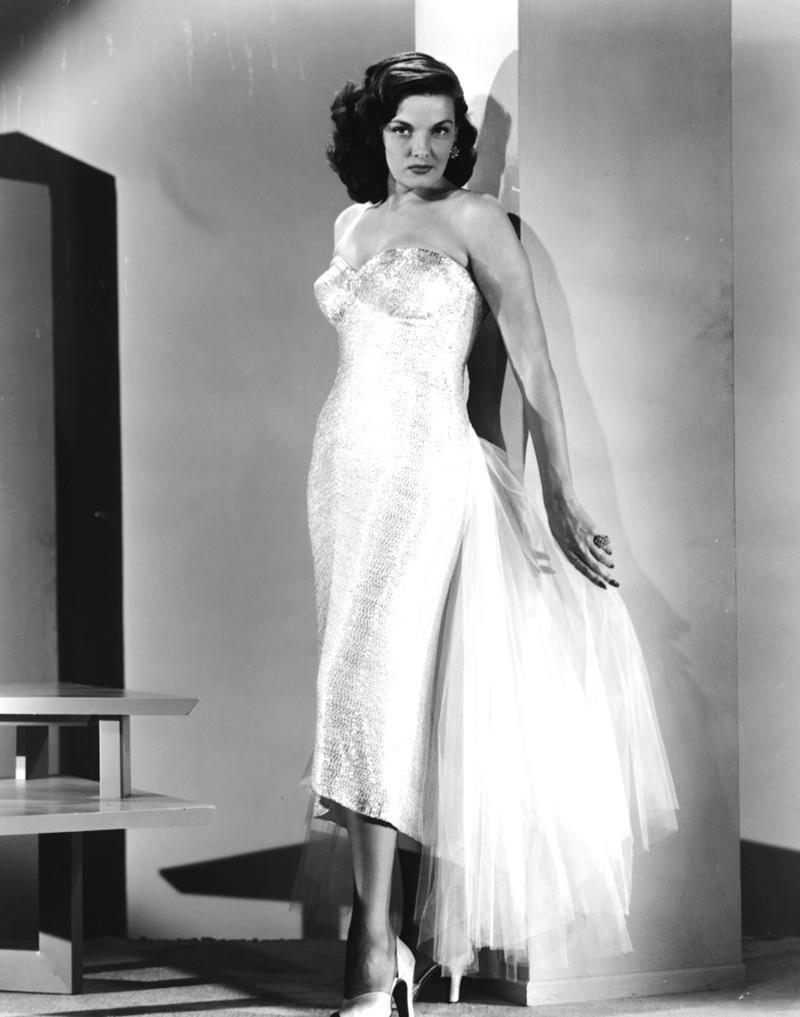 Howard Hughes, en rachetant la R K.O., avait en effet emmené l’actrice avec lui dans ses valises et, His Kind of Woman (Fini de rire) devait être le véhicule royal des deux plus grandes stars du studio Hughes qui avait lancé Jane Russel en 1943 avec The Outlaw (Le Banni) qu’il avait lui même réalisé, orchestrant minutieusement la révélation publique de cette nouvelle bombe sexuelle. Elle ne devait tourner que trois films dans les années 1940 selon les volontés de son Pygmalion auquel elle était liée par un contrat d’exclusivité et qu’il économisait jalousement. Quand Hugues devint propriétaire de la R.K.O., la carrière de Jane Russel, redémarrera et His Kind of Woman fut son premier film pour le studio. En 1953, elle sera prêtée à la 20th Century Fox pour jouer la brune aux côtés de Marilyn Monroe dans Gentlemen Prefer Blondes (Les Hommes préfèrent les blondes), mise en scène par Howard Hawks.