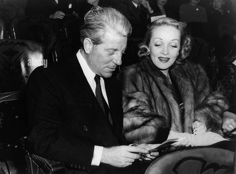 C’est à New York, en 1941, que le héros de Pépé le Moko rencontre l’héroïne de L’Ange bleu. L’événement a pour cadre le cabaret « La Vie Parisienne », où Gabin, exilé depuis peu, est venu soigner son mal du pays. Sans se douter qu’il va tomber amoureux d’une Berlinoise devenue trois ans plus tôt citoyenne américaine ! Mais beaucoup de choses rapprochent en fait les deux acteurs : tous deux font preuve d’une farouche indépendance d’esprit, et portent un regard lucide sur le folklore hollywoodien. Et tous deux ont également refusé de se compromettre avec le cinéma du Reich… Gabin et Marlene ne tardent pas à s’installer à Beverly Hills, dans une villa louée à Greta Garbo. Cette dernière prendra l’habitude d’épier par-dessus la palissade ces voisins aux mœurs si choquantes. En effet, le couple ne prend pas la peine de se cacher, ajoutant encore à la réputation de « femme fatale » de Dietrich. Celle-ci révèle pourtant en privé une tout autre facette, ravie de passer des heures à mitonner de bons petits plats pour « son Jean », si nostalgique de la cuisine française.