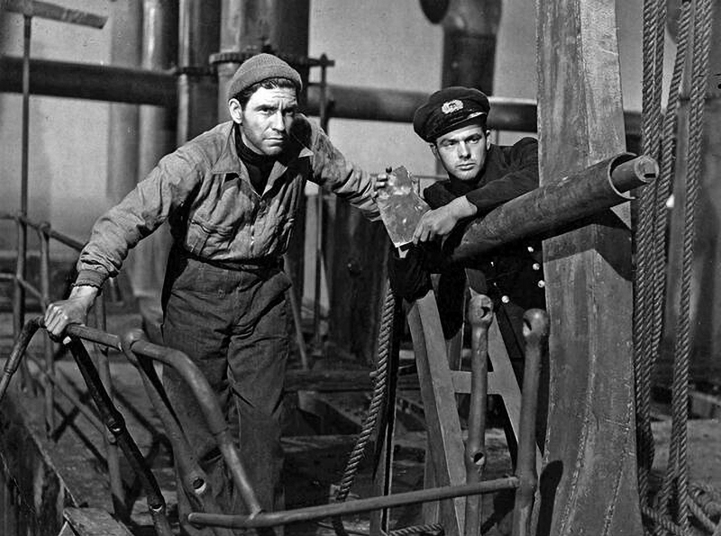 Il est vrai que la guerre n’est qu’à ses débuts. Avec l’intensification des combats, la Ealing sera davantage amenée à célébrer la solidarité de toutes les classes sociales luttant au coude à coude (il faut y voir aussi l’influence de réalisateurs venus de l’école documentariste, comme Harry Watt). Avec le San Demetrio, London (Navire en feu, 1943), la force dramatique et l’émotion priment sur le décor.