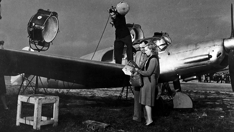Son statut d’œuvre tournée et sortie sous l’occupation allemande, dans laquelle chaque camp a cru trouver de l’eau pour son moulin (exaltation de la famille ou célébration de l’aventure comme résistance ?), a longtemps tenu lieu de seul axe d’analyse du film. De fait, Le Ciel est à vous est d’abord un film de Grémillon en ce qu’il met en scène, comme toute son œuvre, une tension entre contraires – le grand large ou la côte, le ciel ou la terre -, qui pouvait prendre une résonance particulière en 1944… Mais depuis Maldone, en 1922, partagé entre la vie installée d’un fils de famille et la passion pour Zita, la belle Romani, le cinéaste n’a jamais créé que des personnages déchirés, que l’attrait pour l’ailleurs, pour les cimes, conduit parfois au malheur, souvent à la solitude. Le prêtre célébrant les obsèques de l’institutrice dans son dernier film de fiction, L’Amour d’une femme, auquel le cinéaste prête sa voix, n’exalte pas ces destinées : « Si dans la plaine immense vous êtes le grain de blé, n’enviez pas le peuplier solitaire qui d’un élan désespéré s’en va toucher le ciel. » Le Ciel est à vous ne fait pas exception en tant que récit d’une passion absolue frappant le couple le moins susceptible d’être happé par des sentiments hors-norme. Le texte ouvrant le film rappelle que l’histoire est inspirée d’un exploit réel et la source principale d’inspiration de Jean Grémillon, de son scénariste Albert Valentin et de l’auteur des dialogues, Charles Spaak, fut sans doute le récit de l’histoire d’Andrée Dupeyron, qui battit, en 1937, le record du monde féminin de distance en avion en ligne droite, par Paul Bringuier dans le magazine Marie-Claire en juillet 1938. Les termes choisis par celui-ci ne pouvaient qu’attirer l’attention du cinéaste : « Ils n’ont de joie que dans leur travail. Il semble que la destinée des Dupeyron, famille française type, est fixée, qu’elle ne peut plus dévier de sa ligne. Ils s’achemineront peu à peu vers l’aisance, (…) ils arriveront à la vieillesse sans soucis. Alors quelque chose arrive. Une pierre tombe dans cette eau tranquille (…) et tout l’équilibre va être rompu. » Tout est déjà dans ce « Alors quelque chose arrive » et le film reste très fidèle au récit de Bringuier, à l’histoire vraie des Dupeyron devenus les Gauthier.