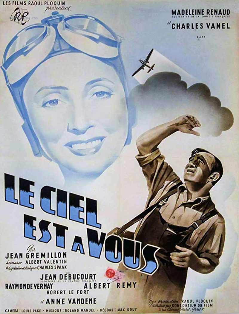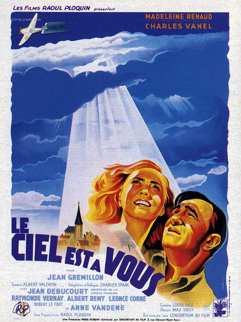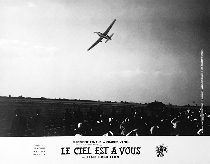 Le Ciel est à vous sort en février 1944, alors que les restrictions de toutes sortes sont de plus en plus draconiennes, interrompant les séances de cinéma pour cause de panne d’électricité, sans parler bien sûr de la situation politique et militaire… Une nouvelle sortie aura lieu dans de meilleures conditions après la Libération. La production de ce film relatant les exploits aériens d’une aviatrice française, fut, on s’en doute, une course d’obstacles encore plus mouvementée que celle de Lumière d’été.
