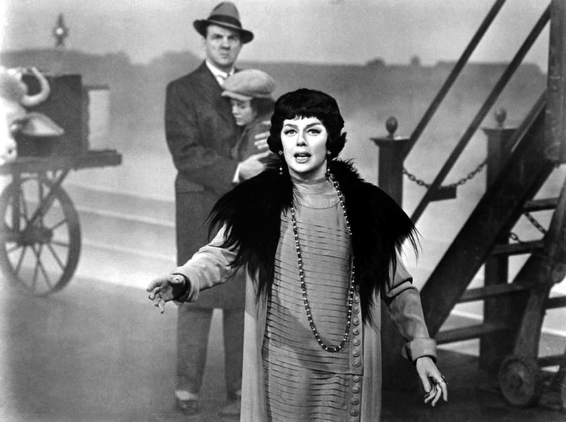Lorsqu’on commence à parler d’une adaptation au cinéma, Ethel Merman compte bien sûr y reprendre sa création. Mais les droits ont été acquis par le producteur Frederick Brisson, qui se trouve être le mari de Rosalind Russell. Quand Brisson se met d’accord avec la Warner pour lancer le projet, c’est évidemment cette actrice qui est choisie pour jouer Rose – d’autant plus qu’elle est une vraie star de cinéma, contrairement à Merman. Le rôle de Gypsy est confié par ailleurs à la jeune Natalie Wood, qui vient de triompher dans West Side Story. Lors du tournage de Gypsy, qui commence en janvier 1962, Rosalind Russell est un peu inquiète de la nouvelle célébrité de sa partenaire, la jolie « Maria » risquant fort de lui voler la vedette. Les rapports entre les deux actrices s’en ressentent inévitablement, et l’une des tâches du metteur en scène consiste à gérer sur le plateau les batailles d’egos. Heureusement, Mervyn LeRoy en a vu d’autres. Ce vétéran a exercé tous les métiers du cinéma, et principalement celui de réalisateur : on lui doit une soixantaine de films, dont les classiques Little Caesar (Le Petit César, 1931), I Am a Fugitive from a Chain Gang (Je suis un évadé, 1932), Little Women (Les Quatre Filles du Dr March, 1949), ou encore Quo Vadis (1951). Parallèlement à cette carrière de cinéaste, LeRoy s’est aussi illustré dans la production (notamment pour The Wizard of Oz), et c’est avec la double casquette de réalisateur et de producteur qu’il tourne Gypsy.