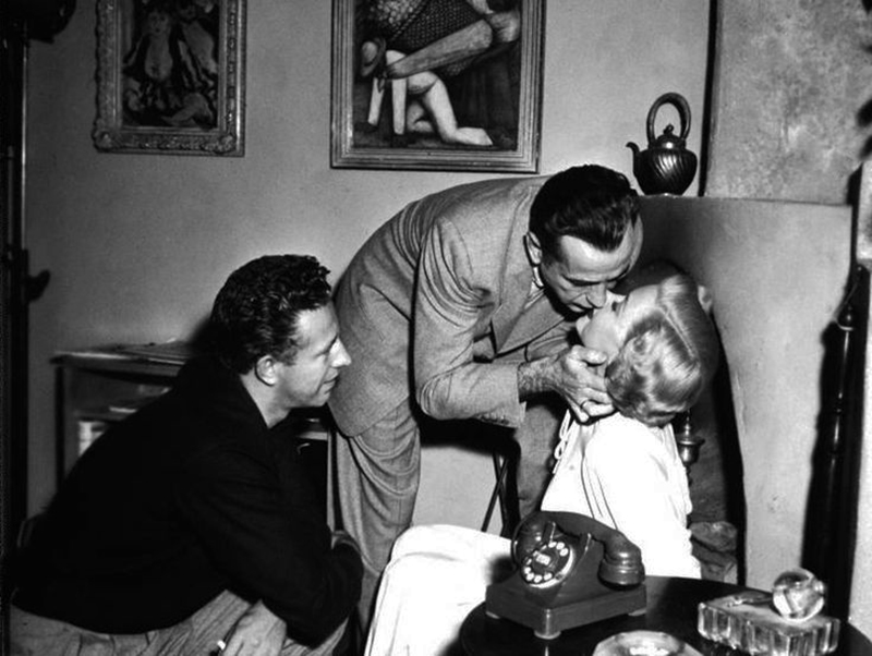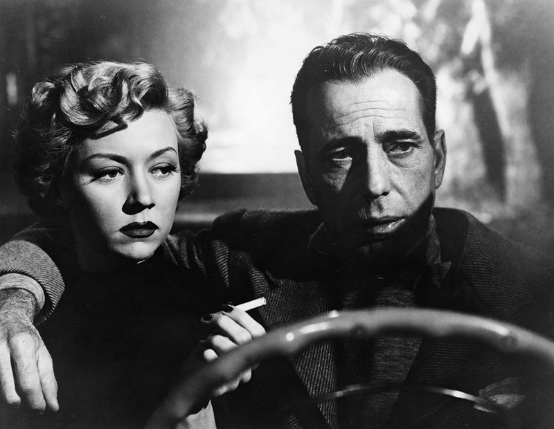 Progressivement, à mesure que la période idyllique de leur liaison commence à se dissiper, elle se met à douter à son tour. En fait, à ce stade du film, le public partage en grande partie ses doutes car la froideur de Dixon et sa nature violente ne peuvent que ternir la sympathie naturelle que l’on éprouve pour la star du film, surtout quand il s’agit d’Humphrey Bogart dont les performances dans d’autres classiques du film noir comme The Maltese Falcon (1941) et The Big sleep (1946) ont toujours été teintées de violence et de motifs ambigus. Lors d’une fête sur la plage avec Nicolai et Laurel, Steele apprend que son amie s’est rendue au commissariat sans le lui dire. Il est furieux de ce qu’il considère comme une trahison et part. Elle le rattrape alors qu’il démarre et saute en voiture à ses côtés. Il refuse de parler et la terrifie en roulant en trombe sur les petites routes sinueuses de montagne, jusqu’à ce qu’il percute un autre véhicule. Quand le conducteur de ce dernier s’énerve à son tour, Steele le frappe brutalement et s’apprête à lui fracasser le crâne avec une pierre quand les supplications de Laurel l’arrêtent. Il minimise l’incident en déclarant : « J’ai connu des centaines de bagarres de ce genre » avant d’enlacer Laurel, plaçant ses mains exactement de la manière dont la police soupçonne que le tueur a étranglé Mildred.