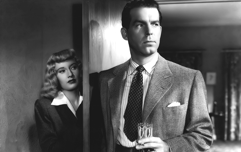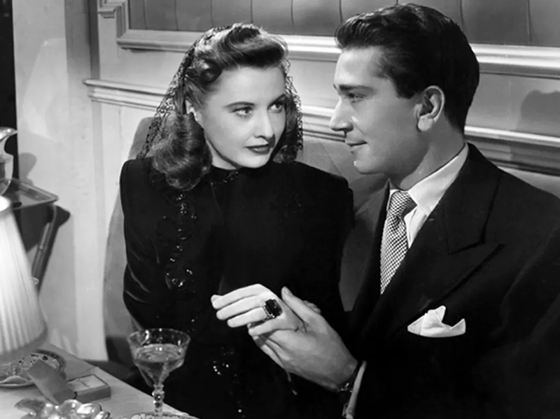 Double Indemnity est un film noir fondateur de Billy Wilder, inspiré d’un roman de James M. Cain. Pour la première fois peut-être, on ne trouve dans la composition de Barbara Stanwyck aucune trace de tendresse ni d’humanité. Elle incarne Phyllis Dietrichson, une épouse infidèle et cupide. Pour toucher une police d’assurance libellée à son nom, elle fomente l’assassinat de son mari, par la main de Walter Neff, un inspecteur de la compagnie interprété par Fred MacMurray. Le talent de Barbara Stanwyck et le génie de Billy Wilder se rencontrent particulièrement à l’instant où Fred MacMurray commet son crime. La caméra s’attarde sur le regard, tout en jubilation contenue, d’une Barbara Stanwyck plus vénéneuse et fatale que jamais. Quels que soient les mérites de la réalisation, le travail de la comédienne est exceptionnel : lorsqu’elle lâche sur un ton presque anodin à Fred MacMurray « Nous sommes tous les deux pourris », elle est au zénith de son art, et le film noir, au sommet de sa ténébreuse magie. Dans ce film, Barbara Stanwyck est coiffée d’une perruque blonde qui ne fait pas l’unanimité. Pourtant, Wilder resta inflexible, car le caractère factice de la perruque était en harmonie avec la psychologie de ce personnage très nouveau pour Barbara Stanwyck. Le maquillage contribue également à la composition de l’actrice : en prolongeant le rouge au-delà de la limite supérieure des lèvres, il transforme et rajeunit son visage. Le chef-opérateur John F. Seitz joue un rôle essentiel dans la réussite du film, ce que soulignera Barbara Stanwyck elle-même : « La manière dont étaient éclairés les lieux, la maison, l’appartement de Walter, ces ombres, ces lamelles de lumière franche aux angles étranges : tout cela aida à ma performance. » Wilder avait absolument tenu à ce qu’elle joue le rôle de Phyllis Dietrichson, et ne regrettera pas un instant son choix.
