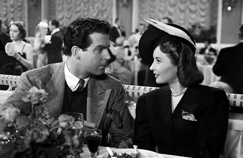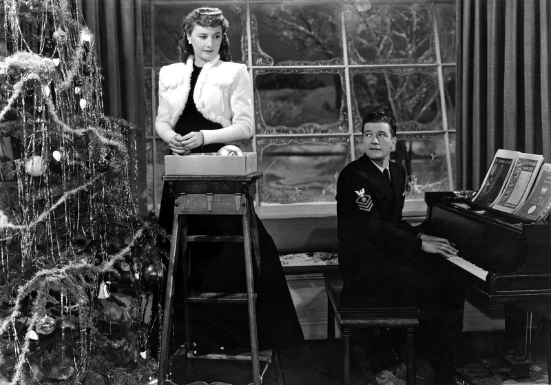Devenue très amie avec Henry Fonda, Barbara Stanwyck le retrouvera encore en 1941 pour une comédie : You Belong to Me (Tu m’appartiens) de Wesley Ruggles. Et toujours en 1941, elle tourne Ball of Fire (Boule de feu) de Howard Hawks, une transposition comique et moderne du mythe de Blanche Neige écrite par Charles Brackett et Billy Wilder. Avec Flesh and Fantasy (Obsessions, 1943), film à sketches de Julien Duvivier, elle fait l’une de ses rares incursions dans l’univers du fantastique : elle est la femme apparue dans le cauchemar – peut-être prémonitoire – d’un funambule interprété par Charles Boyer. En 1945, alors qu’elle vient de s’imposer comme star du film noir dans Double Indemnity (Assurance sur la mort, Billy Wilder, 1944), elle remporte un de ses plus grands succès publics dans la comédie Christmas in Connecticut de Peter Godfrey. Célibataire bohème et incapable de faire la cuisine, elle tient pour un magazine une chronique racontant sa vie familiale, remplie de joies gastronomiques, dans une ferme du Connecticut. Cette comédie sans grande audace de la Warner met le doigt sur le caractère mensonger du rêve de papier glacé colporté par les magazines. Barbara Stanwyck est délicieuse en célibataire plus toute jeune qui se retrouve brusquement affublée d’un faux mari et d’un vrai soupirant… [Barbara Stanwyck, et du malheur naquit une étoile – Hollywood, la cité des femmes – Antoine Sire – Ed.Institut Lumière / Actes Sud (2016)]