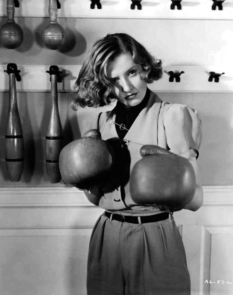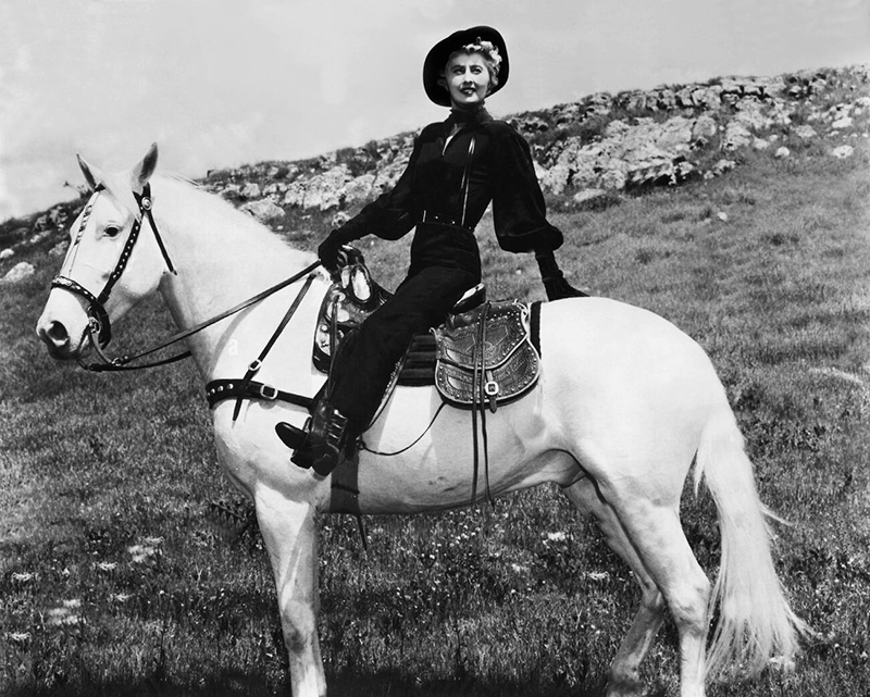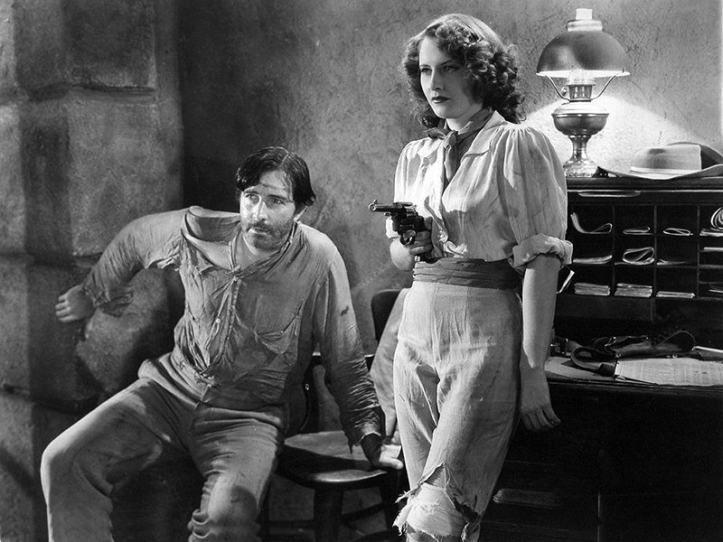 Peu de grandes actrices sont aussi à l’aise avec les chevaux que Barbara Stanwyck. Dès Forbidden, elle montre ses talents de cavalière, dans une scène qui lui vaut pendant le tournage une blessure dont il lui restera des séquelles trente ans plus tard. Dans The Woman in Red (La Dame en rouge, 1935), réalisé par le Français d’Hollywood Robert Florey, Barbara Stanwyck incarne une jeune femme d’origine modeste qui monte des chevaux pour le compte de personnes fortunées. Ce film vaut surtout pour quelques scènes très bien filmées, notamment celle où Barbara Stanwyck quitte une soirée mondaine pour aller nourrir les chevaux à l’écurie : sa complicité avec les animaux est véritablement palpable. La même année, Barbara Stanwyck incarne Annie Oakley, une championne de tir pionnière des spectacles de cow-boys de Buffalo Bill, dans Annie Oakley (La Gloire du cirque) de George Stevens. Pleine à la fois de vigueur physique et de force intérieure, elle excelle dans ce rôle de femme tiraillée entre ses ambitions et son attirance pour son principal compétiteur, que joue Preston Foster. Le succès de ce premier film avec la RKO lui vaut un contrat non exclusif avec ce studio et un autre avec la Fox !
