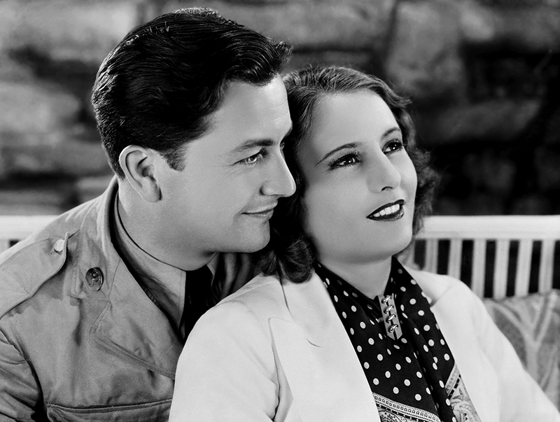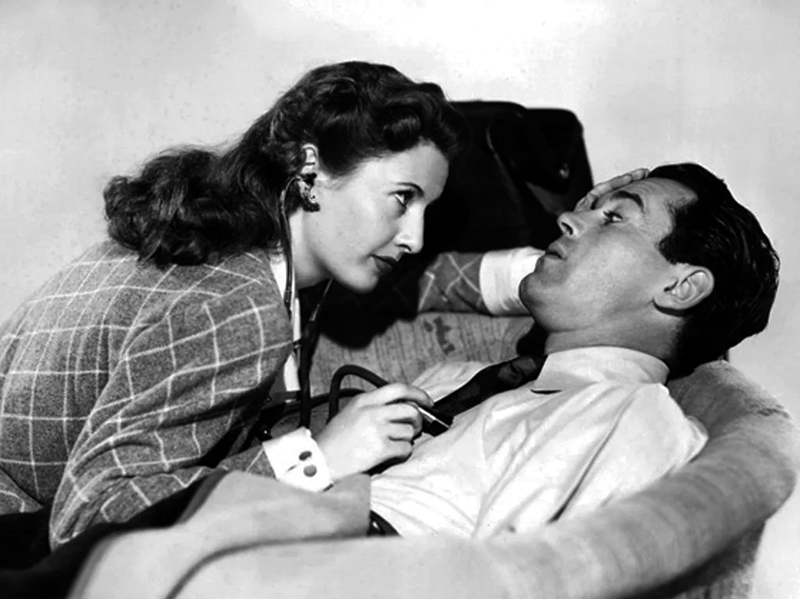 Dans le bien meilleur Sorry, Wrong Number (Raccrochez, c’est une erreur, 1948) d’Anatole Litvak, Barbara Stanwyck interprète un extraordinaire personnage de femme rongée par la paranoïa, dont les angoisses vont s’avérer justifiées. Vissée à son lit par une supposée maladie, accrochée à ses potions et à son téléphone, elle se retrouve par hasard connectée à une conversation entre deux hommes préparant un crime. Elle découvre peu à peu que c’est elle qu’on veut assassiner. C’est sans doute avec ce rôle d’hystérique que Barbara Stanwyck est passée le plus près de l’oscar, mais il se refusera toujours à elle : outre Sorry, Wrong Number , elle fut nommée pour Stella Dallas, Ball of Fire et Double Indemnity. N’étant liée par contrat à aucun des grands studios, Barbara Stanwyck ne bénéficia jamais des campagnes d’influence orchestrées par ceux-ci pour leurs vedettes maison. Poursuivie au cinéma par des maris criminels, Barbara Stanwyck n’est pas heureuse en ménage dans la vraie vie : après son divorce avec Frank Fay, son agent Zeppo Marx lui présente un autre de ses protégés, Robert Taylor, de quatre ans plus jeune qu’elle. Taylor était totalement sous l’emprise d’une mère abusive, et sa complicité avec Barbara Stanwyck l’aida à s’en échapper. Elle l’appelle « Junior », il l’appelle « The Queen ». Ils tourneront deux films ensemble en 1936 et 1937. Dans His Brother’s Wife (La Fièvre des tropiques) de W. S. Van Dyke, Barbara Stanwyck tombe amoureuse d’un médecin (Robert Taylor), mais, pour des raisons que le critique du New York Times jugeait « jamais sérieusement expliquées », elle choisit d’épouser son frère.