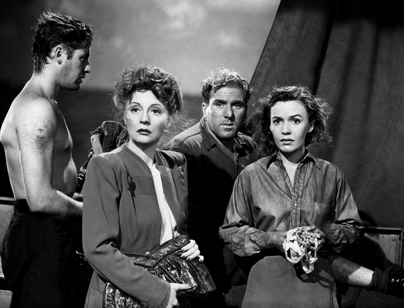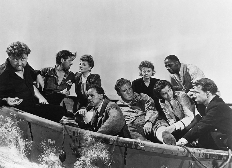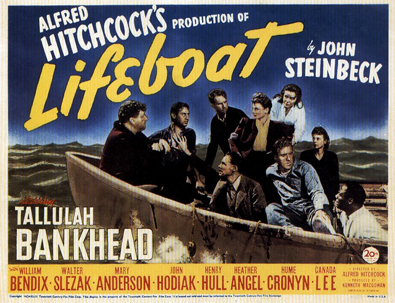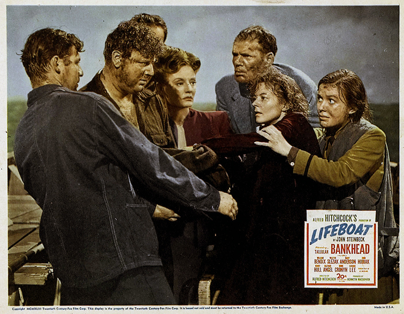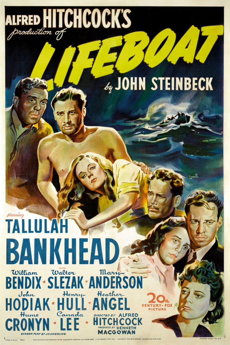 Le casting de Lifeboat ne comptait aucune grande star, mais une troupe d’acteurs convaincants. William Bendix (1906-1964) avait débuté au cinéma en 1942. Il est surtout connu pour ses rôles dans les films noirs. Walter Slezak (1902-1983), fils du ténor Leo Slezak, avait joué les jeunes premiers dans des films allemands avant de passer aux Etats-Unis, où il devint un « méchant » réputé. John Hodiak (1914-1955) ne réussit pas aussi bien. Malgré plusieurs rôles dans des comédies musicales de la M.G.M, il finit dans les séries Z. Henry Hull (1890-1977) avait été un jeune premier réputé des années 1920, avant de changer de registre avec Stuart Walker (Le Monstre de Londres, 1935), ce qui le dirigea vers une filmographie brillante. La star de Lifeboat était Tallulah Bankhead (1903-1968). L’actrice trouvait enfin auprès d’Hitchcock un rôle à la mesure de son excentricité. Sa carrière, faite de scandales et de coups d’éclat (notamment ou théâtre), allait également être marquée par son interprétation dans A Royal Scandal (Scandale à la cour, 1945) de Preminger. Le seul hitchcockien de la troupe était Hume Cronyn (1911-2003).Il avait tenu le rôle du voisin dans Shadow of a Doubt (1943) et devait ensuite participer à l’adaptation de deux films du réalisateur : Rope (1948) et Under Capricorn (Les Amants du Capricorne (1949).
