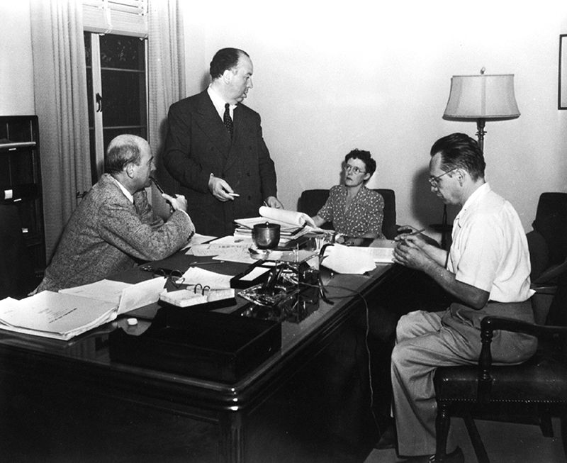 A. H. D’abord, j’avais commandé ce sujet à John Steinbeck et son travail était incomplet. J’ai fait venir alors un écrivain très connu Mac Kinley Cantor, qui a travaillé deux semaines… Je n’aimais pas du tout ce qu’il avait fait. Il m’a dit : « Je ne peux pas faire mieux », alors je lui ai dit : « Merci beaucoup », et j’ai pris un autre écrivain, Jo Swerling, qui avait travaillé pour Frank Capra. Le script terminé et le film sur le point de commencer, Je me suis aperçu que chaque séquence se terminait sans point d’orgue et alors je me suis efforcé de donner une forme dramatique à chaque épisode.