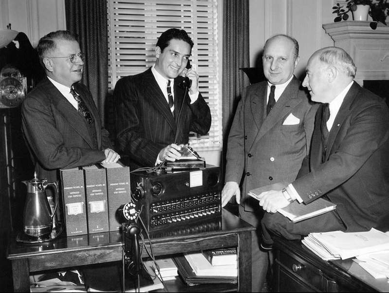 De gauche à droite : Y. Frank Freeman (vice-président de la Paramount), Arturo de Córdova (acteur), Barney Balaban (président de la Paramount), Cecil B. DeMille (1943)