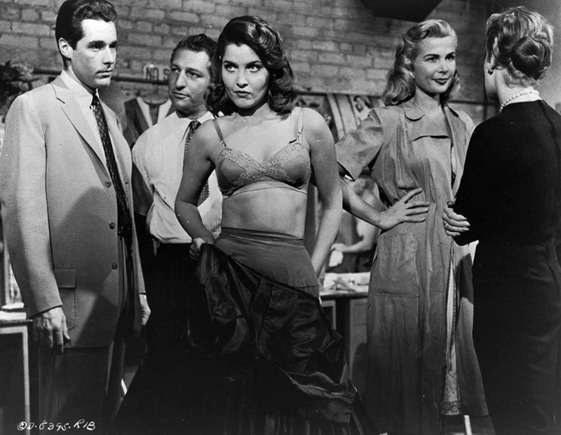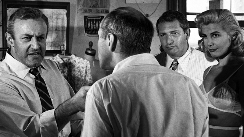 Au début du film Alan Mitchell est un personnage incertain et inefficace manipulé tour à tour par son père, ou ses hommes de main, et par Renata, l’organisatrice du syndicat. Celle-ci attire Mitchell hors du monde semi-insulaire de la mode, Mitchell étant à la fois fasciné et horrifié par les révélations qu’elle lui fait, Aldrich modifie ses compositions et utilise alors des angles de prise de vue plus fermés, des éclairages verticaux ou latéraux dont les ombres projetées sur le visage du protagoniste accentuent son irrésolution. Mitchell est dès lors en butte à la colère d’Artie Ravidge qui avec ses dents blanches brillant dans sa figure grêlée de petite vérole, incarne tous les dangers du monde noir. Ce personnage de « méchant » quasi-satirique et archétypal étaye, en quelque sorte, la sensibilité libérale de Mitchell mais le fait que Ravidge. pour garder les gens à distance, doive les menacer du bout brûlant de sa cigarette, prouve qu’il est sans doute plus efféminé et plus vulnérable qu’Il n’y paraît.