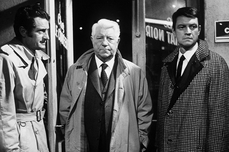 Nombreux sont les films policiers où représentants de l’ordre et hors-la-loi se voient renvoyés dos à dos, comme des frères ennemis qui ne représenteraient au fond que deux facettes d’un même tempérament. Une hypothèse que semble confirmer la filmographie de Jean Gabin : car si l’acteur a connu ses premiers grands succès en jouant les voyous à la Pépé le Moko, et s’est illustré dans ce registre jusqu’à la fin de sa vie (il incarne encore un gangster dans L’Année sainte, son tout dernier film), il a également joué les redresseurs de torts dans un grand nombre de filins, et non des moindres. Certes, Gabin ayant abordé ce type de rôles dans la seconde partie de sa carrière, il reste beaucoup moins identifié comme un justicier que comme un truand. Et pourtant, dès 1931, alors qu’il n’est encore qu’un débutant, l’acteur incarne son premier rôle de policier dans Méphisto, un ciné-roman en plusieurs épisodes inspiré des « serials » américains. Mais il est vrai qu’il lui faudra ensuite attendre 1954 pour repasser du « bon » côté de la barrière, en tenant le rôle du Nantais dans Razzia sur la chnouf. Et encore s’agit-il d’un inspecteur de police qui se fait passer tout au long du film pour un gangster – comme si cette transition devait se faire en douceur, sans heurter un public habitué à voir en Gabin un sympathique fauteur de troubles … Mais, une fois ce pas franchi, le comédien se fera une spécialité des rôles de « flics ». Interprète du commissaire Gallet dans la version moderne de Crime et châtiment signée par Georges Lampin en 1956, il enchaîne avec Le Désordre et la nuit, avant d’incarner à trois reprises le célébrissime commissaire Maigret. Et après une pause au cours des années 1960, Gabin reprendra du service pour Le Pacha et Le tueur.