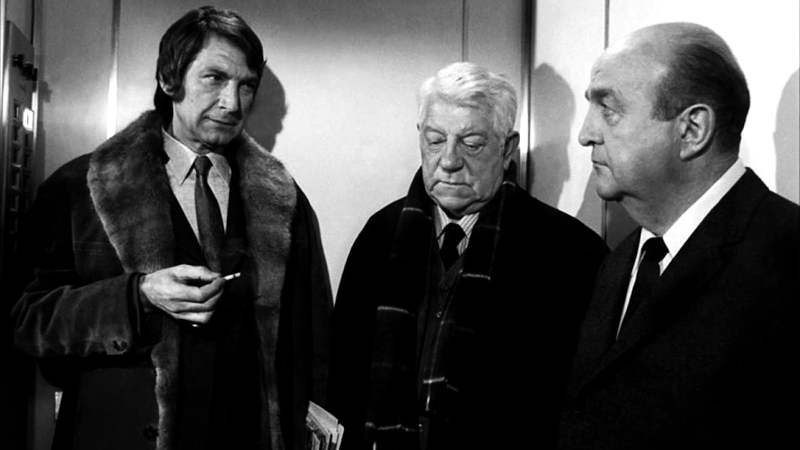 Mais si le métier de policier s’avère le plus exposé (sur le terrain comme à l’écran), il existe une autre manière de veiller au bon ordre de la société : celle des magistrats, et de tous ceux qui participent de près ou de loin au système judiciaire. Gabin s’est également illustré dans ce domaine. C’est avec une certaine surprise que le public le découvre ainsi en 1955 dans la peau d’un juge pour enfants (Chiens perdus sans collier) – un type de rôle qui tranche radicalement avec ce que l’on avait pu connaître jusque-là du comédien. Puis il campe dans En cas de malheur un grand avocat parisien. En 1961, Gabin incarne même dans Le Président le plus haut dignitaire de l’État français, garant entre autres de la Justice. Au début des années 1970, il joue également dans Deux hommes dans la ville un rééducateur qui s’efforce d’aider un ancien détenu interprété par Alain Delon. Avant de se voir confier par André Cayatte le rôle d’un président de cours d’assises dans Verdict. Mais curieusement, ce nombre important de personnages appartenant au monde de la police et de la justice ne viendra pas à bout de l’image profondément « asociale » de Gabin. Sans doute parce que tous ces rôles comportent malgré tout une part importante de transgression, les méthodes utilisées par ces protagonistes n’étant pas toujours très réglementaires (En cas de malheur en est un parfait exemple). Comme si, avec Jean Gabin, la rébellion viscérale de Pépé le Moko ne parvenait jamais à disparaître totalement sous l’uniforme de l’homme de loi. [Eric Quéméré – Collection Gabin – 2006]