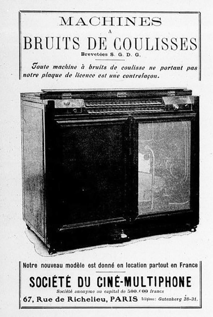 Pour réaliser ces effets sonores particuliers, les propriétaires des salles utilisaient d’ingénieux appareils capables de produire toutes sortes de bruits, du chant des oiseaux au tir d’un canon. Si cette technique « d’après nature » parvenait à plonger le public dans l’atmosphère du film, elle présentait cependant quelques inconvénients : elle était liée en effet à l’habileté du « bruiteur », lequel ne réussissait pas toujours à synchroniser ses interventions avec l’action filmée, provoquant ainsi l’hilarité des spectateurs.