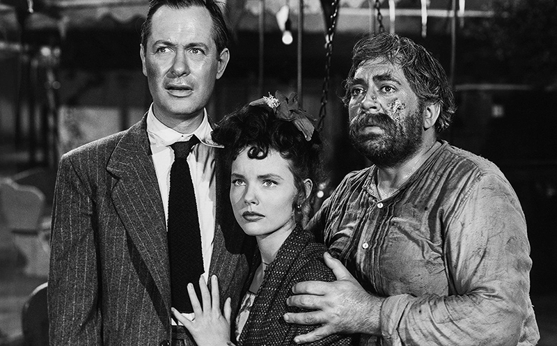 Le carrousel de Tio Vivo est plus qu’une image donnant son titre au film. Un peu comme l’appartement de Rica dans Thieves’ Highway (Les Bas-fonds de Frisco), il représente un véritable asile, et pas seulement pour Gagin. Ce dernier ressent très vite une sorte de malaise face à la relation inhabituelle qui lie les propriétaires à leur manège. Pila lui demande quel cheval monter : il répond laconiquement, en désignant le plus proche de lui : « Pourquoi pas le rose ? ». Tous les chevaux se ressemblent et choisir l’un ou l’autre ne signifierait rien. Ils tournent tous dans le même sens. Mais pour Pila, qui n’a pas perdu la signification du choix. la différence est considérable. Le manège est l’un des objets les plus stylisés du film, de par sa nature d’abord – attraction éminemment théâtrale – et parce qu’il est photographié, en studio, dans un éclairage gris neutre différant des prises contrastées faites en extérieur. Mais. paradoxalement c’est l’un des objets qui semble le moins souffrir des contraintes de l’artifice. Outre sa théâtralité et sa valeur rituelle, Tio Vivo est, essentiellement un stéréotype noir. Gagin, plongé comme il l’est dans les codes du noir (son désir de vengeance en particulier) ne peut y voir le symbole du choix existentiel, ce que Pila, sans avoir recours à une terminologie compliquée, fait d’emblée. Comme Nick Garcos dans Thieves’ Highway, ce n’est que lorsque Gagin accepte de prendre le carrousel pour un sanctuaire, fût-ce avec réticence. que son sens véritable lui apparaît. Conditionné par son aliénation, qui le pousse à adopter le rôle du vengeur, il rejettera une fois de plus Tio Vivo dès qu’il aura une seconde chance de tuer Hugo. Mais ce rejet représente pourtant un choix authentique ; et dans le monde noir. le fait de pouvoir choisir garantit soit la destruction, soit le salut. [Encyclopédie du film Noir – Alain Silver et Elizabeth Ward – Ed Rivages (1979)]