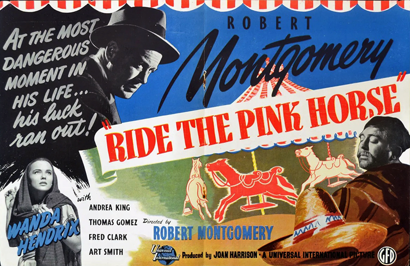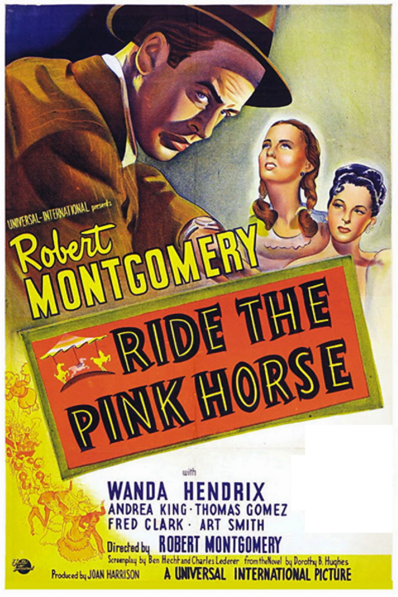 Ride the Pink Horsei fut soutenu par André Bazin qui en vantait la fraîcheur et la poésie et qu’il décrivait comme une « subtile imitation du genre » (le thriller) « que l’auteur contraint à révéler ses rouages les plus secrets ». Dès la séquence d’ouverture, remarquablement filmée en plans très longs, Robert Montgomery crée un climat étrange, somnambulique entièrement fondé sur l’attente et la frustration aussi bien chez les personnages que dans la construction dramatique. Le romancier James Agee louait ce moment qu’il jugeait pratiquement révolutionnaire, pour une production hollywoodienne, où Montgomery invite à dîner dans un grand hôtel la jeune Mexicaine jouée par Wanda Hendrix : « Les réactions des dîneurs, des garçons sont montrées avec simplicité, justesse et courage », tout en regrettant que Montgomery n’aille pas plus loin. II est vrai qu’avec de telles ambitions on peut regretter le choix (et surtout la convention) de Thomas Gomez des décors de studio, l’interprétation stéréotypée perpétuant un grand nombre de clichés hollywoodiens dans le traitement des minorités, mais le film veut se démarquer par rapport à une problématique réaliste, ou plutôt par rapport à sa conception codifiée inhérente à un genre bien précis. La où on attend l’action, Montgomery met l’accent sur l’émotion et nous finissons par tout ressentir à travers les yeux du personnage principal. Peu importe alors qu’on ne connaisse pas la nature des trafics effectués par le personnage que Montgomery vient de faire chanter (très bien joué par Fred Clark, originale idée de distribution). Il s’agit moins d’un manque d’audace que d’une démarche dramatique oblique. [Bertrand Tavernier et Jean-Pierre Coursodon – 50 ans de cinéma américain – Omnibus – Ed. Nathan (1995)]