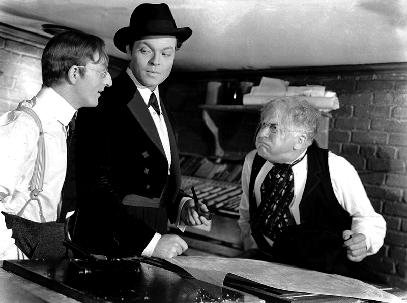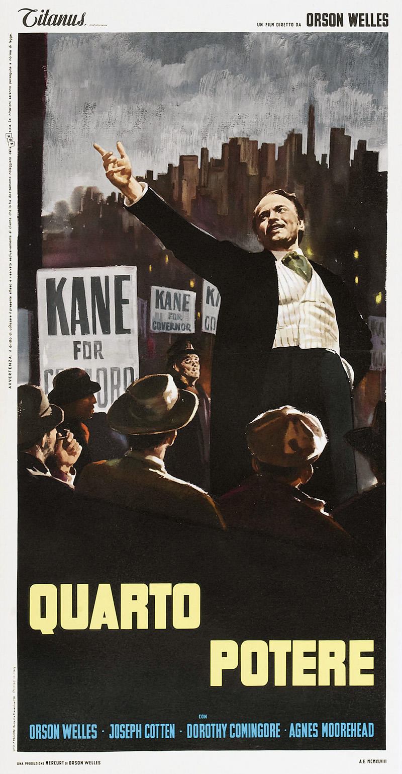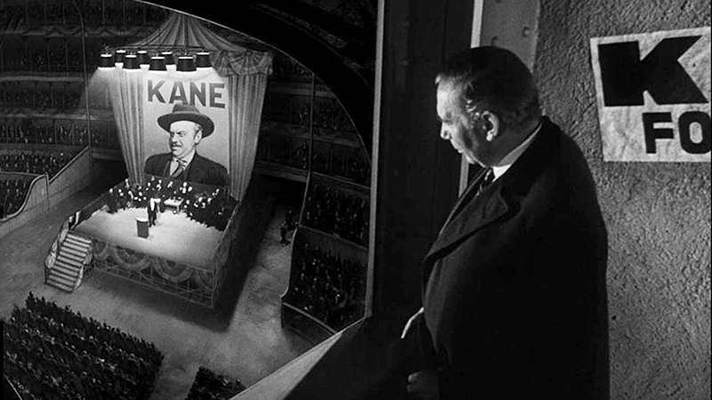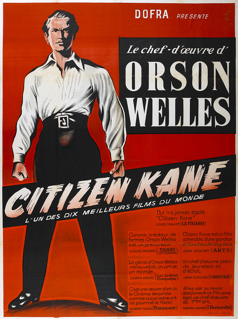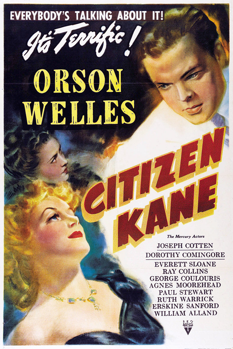 Connu pour ses mises en scène peu conformistes de Shakespeare et pour l’immense panique provoquée par son adaptation radiophonique de La Guerre des mondes, de H. G. Wells, un jeune homme de vingt-cinq ans, Orson Welles (1915-1985), obtient de la R.K.O. un contrat exceptionnel, qui lui laisse toute liberté – chose rarissime dans la pratique des studios hollywoodiens. Il en sortira Citizen Kane, tournant majeur dans l’histoire du cinéma. Avec son opérateur Gregg Toland, Orson Welles réhabilite les techniques du muet : profondeur de champ, plongées, contre-plongées découvrant les plafonds, montage dynamique. Il laisse aussi ses acteurs, à commencer par lui-même, évoluer dans de longs plans-séquences, faisant de la parole un élément essentiel de la mise en scène. À la fois méditation sur le pouvoir et la mort, essai, document, fiction, enquête sur un magnat de la presse inspiré par William Randolph Hearst qui tentera de faire interdire le film, Citizen Kane connaît un succès de scandale mais s’avère un échec commercial, qui pèsera lourdement sur l’œuvre à venir de Welles. Il influera pourtant sur le meilleur du cinéma moderne, dont la Nouvelle Vague. [Joël Magny, « Citizen Kane (O. Welles), en bref », Encyclopædia Universalis]