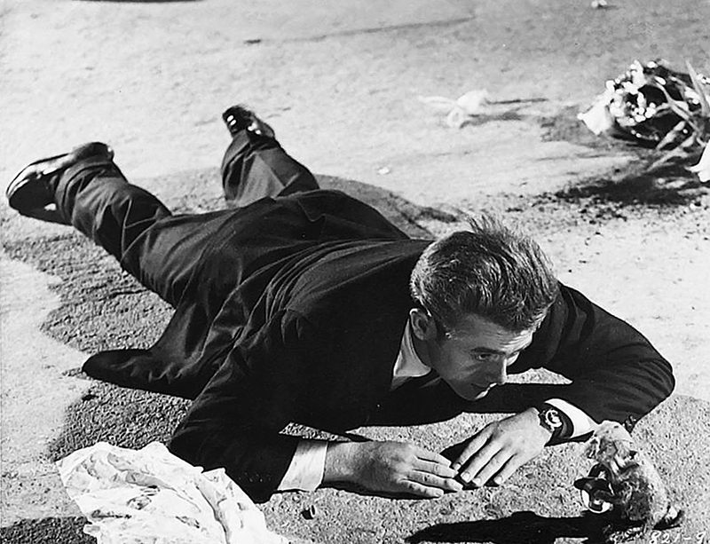 Le succès du film d’Elia Kazan devait pousser la Warner à en produire un second, cette fois sous la direction de Nicholas Ray, et ce fut Rebel Without a Cause. De la position fœtale dans laquelle il apparaît au début jusqu’à son agonie grandiloquente, James Dean ressemble à un être venu du passé ou de quelque lointaine planète, jetant sur le monde un regard d’une lucidité tragique. Ses souffrances sont celles du poète ou de l’artiste, et ce n’est pas sans trouble qu’on le voit fredonner du Wagner et observer Natalie Wood tel un Hamlet décadent contemplant une Ophélie de drugstore. La présence de James Dean sur le plateau était tellement impressionnante que Jim Backus, l’interprète du père, pouvait déclarer : « C’était la première fois, dans l’histoire du cinéma, qu’un garçon de vingt-quatre ans, qui n’avait qu’un film derrière lui, était pratiquement devenu le coréalisateur. »