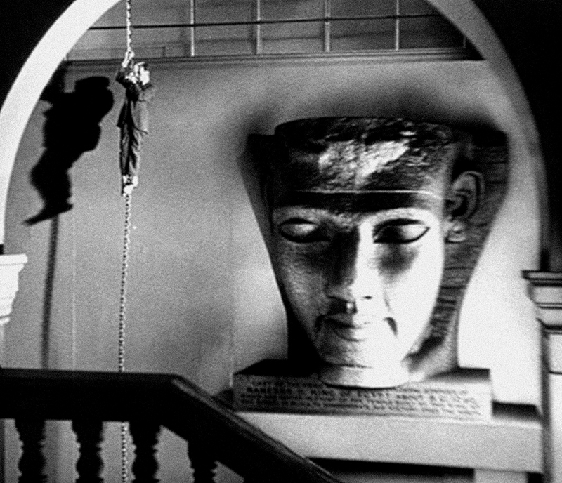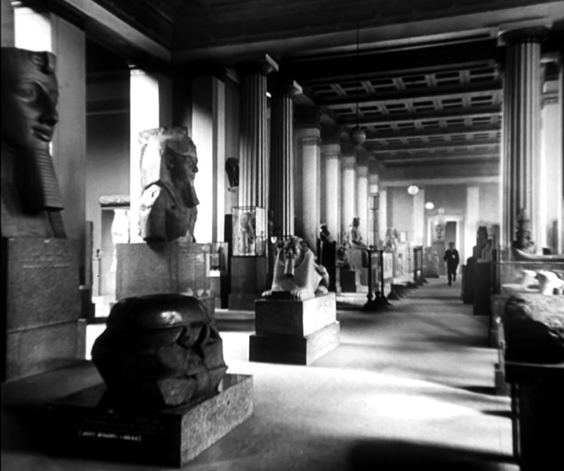 A. H. Effectivement, il n’y avait pas assez de lumière pour filmer à l’intérieur du musée, alors nous nous sommes servi du procédé Shuftan. On place un miroir sous un angle de quarante-cinq degrés, dans lequel se reflète une photo du décor du musée. Les photos ont été prises avec une exposition de trente minutes. Nous avions neuf photos reproduisant des endroits différents et, comme elles étaient transparentes, nous pouvions les éclairer par derrière.