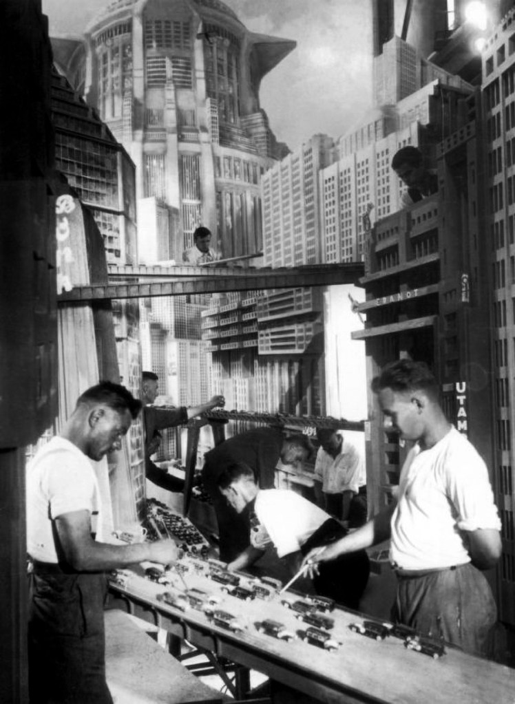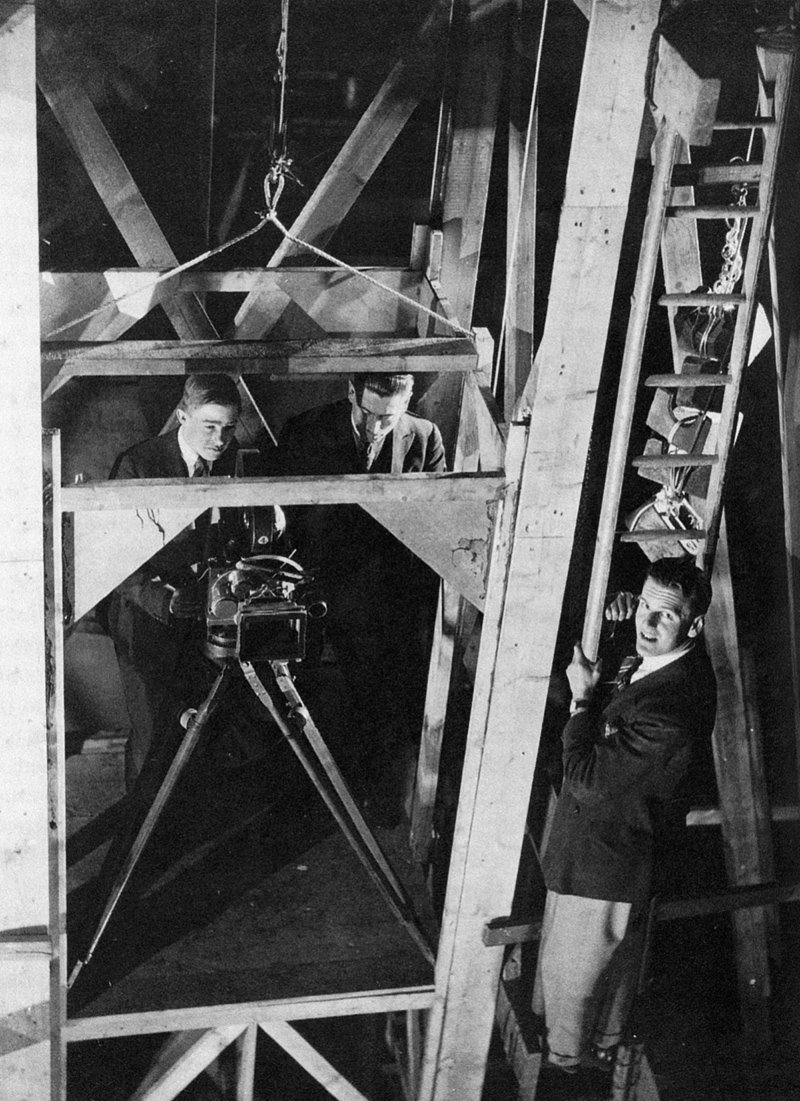 Hitchcock a toujours été à la pointe de la technique cinématographique et des effets spéciaux, il le prouvait déjà avec Blackmail. Trois ans auparavant, un certain Fritz Lang avait réalisé un film qui devint très vite une référence incontestée dans l’histoire du cinéma : Metropolis (1927). Sur le tournage, le réalisateur autrichien avait fait appel à un jeune homme de trente ans qui cumulait les talents de peintre, sculpteur, architecte, décorateur et technicien du cinéma : Eugen Schüfftan (1893-1977), plus connu par la suite sous son nom américanisé: Eugene Shuftan. Schüfftan, chargé des effets spéciaux du film, avait mis au point un procédé de trucage qui porte son nom et qui fut beaucoup utilisé. Il s’agissait de placer dans le champ de la caméra un miroir désargenté sur la moitié de sa surface. Le bas du miroir, transformé en vitre, laissait voir le décor où évoluaient les acteurs. Le haut, réfléchissant, renvoyait l’image d’une maquette ou d’une photographie de la partie supérieure du décor. Les deux images devaient être parfaitement jointes pour apparaître sur la pellicule en une seule et unique. Cette invention permettait soit d’élaborer des décors hallucinants, comme ceux de Metropolis, soit de reconstruire un lieu existant à moindres frais, puisque toute une partie était réalisée en maquette.