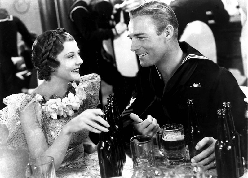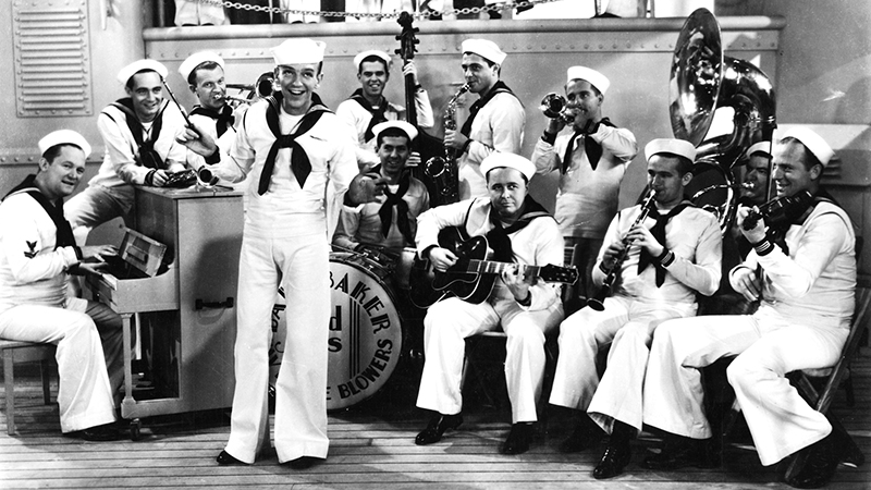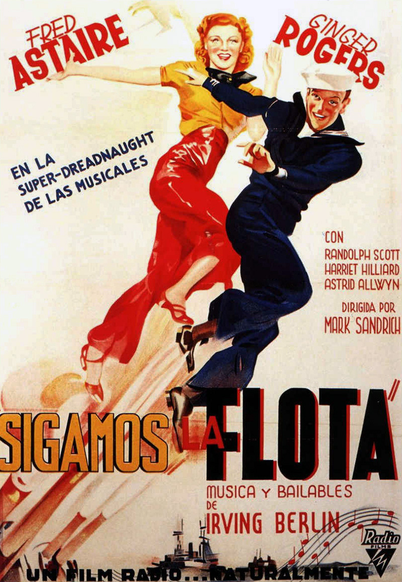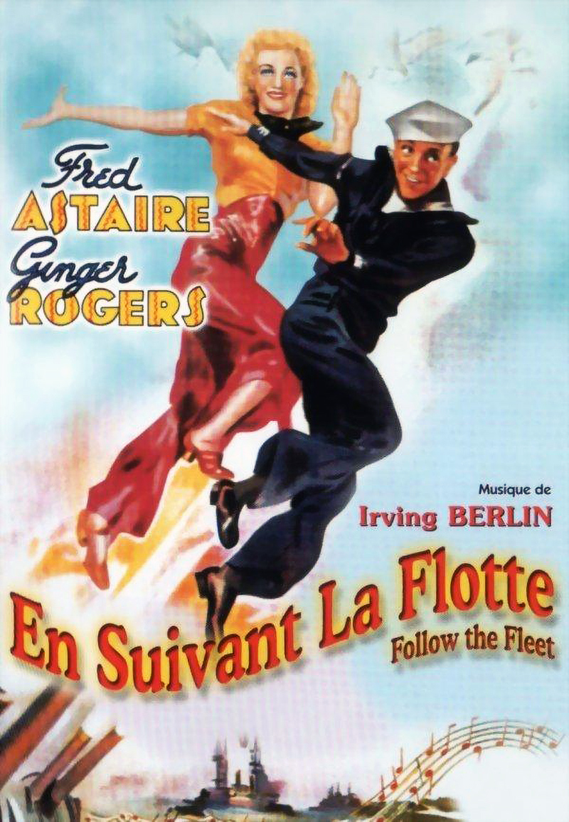 Follow the Fleet (En suivant la flotte) est le deuxième film pour lequel Irving Berlin compose spécialement des chansons pour Fred Astaire et Ginger Rogers, et le moins que l’on puisse dire est que cette association offre de bons résultats. Outre que le film connaît un grand succès au box-office (ce sera le plus rentable du tandem après Top Hat, sa bande originale comporte de nouvelles pépites. En particulier Let Yourself Go, I’m Putting all My Eggs in One Basket et Let’s Face the Music and Dance, trois chansons popularisées par le film et qui deviendront des succès de radio quand Fred Astaire les réenregistrera en solo dans les mois qui suivent. Ce sont aujourd’hui des standards de jazz, qui ont été repris par d’innombrables chanteurs… Irving Berlin a aussi composé pour le film des morceaux moins célèbres, comme We Saw The Sea, I’d Rather Lead A Band et But Where Are You ?, et a même réussi à « recaser » Get Thee Behind Me Satan, chanson destinée à Ginger Rogers dans Top Hat (Le Danseur du dessus) et finalement supprimée. Interprété dans Follow the Fleet par Harriet Hilliard, ce titre romantique sera censuré en Angleterre pour sa référence « choquante » au maître des Enfers…