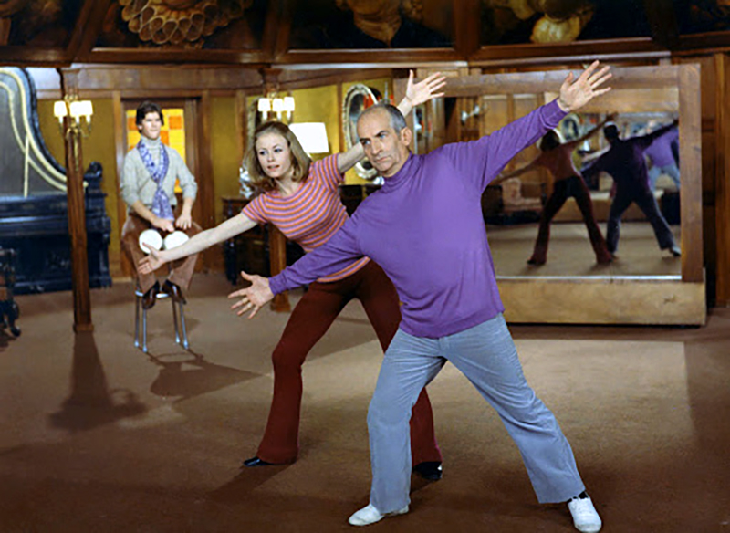 Le tandem De Funès-Bourvil se retrouvera une dernière fois à l’affiche de ce qui constitue, aujourd’hui encore, le plus phénoménal succès français, La Grande Vadrouille (1966) de Gérard Oury. Sans se nuire, bien au contraire, les deux acteurs, qui ont activement participé à l’élaboration du scénario, composent, chacun dans son registre, un duo d’une incontestable drôlerie. Après La Folie des grandeurs (1971), où il est le partenaire d’un Yves Montand inattendu, De Funès clôt sa collaboration avec Oury avec Les Aventures de Rabbi Jacob (1973). En 1974, alors que tout est prêt pour le premier tour de manivelle d’un nouveau film avec Oury, Le Crocodile, De Funès est victime d’un infarctus. Les énormes problèmes financiers que soulèveront cette défection forcée jetteront un froid dans ses relations avec le cinéaste. Remis de ses problèmes de santé, De Funès entame une nouvelle collaboration avec Claude Zidi dont il semble à l’en croire fort satisfait : « Je ne veux plus jouer les hommes toujours en colère, insupportables. On me l’a trop fait faire. Claude Zidi l’a compris qui m’a écrit un rôle plein de nuances… Il y a un sentiment que j’aime bien exprimer aujourd’hui, la candeur. » L’Aile ou la cuisse (1976) de Zidi forme un nouveau duo de comiques, De Funès-Coluche. Ce qui n’était pas pour déplaire à De Funès, volontiers disposé aux confrontations d’acteurs, comme il en donne une autre preuve avec Annie Girardot avec laquelle il forme le couple chamailleur de La Zizanie (1977), toujours de Zidi.