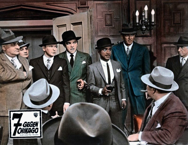 Les Sept voleurs de Chicago prolonge la mythologie propre au Rat Pack : une camaraderie affichée, un humour complice et une manière très décontractée d’occuper l’écran. Les acteurs ne se contentent pas d’interpréter des rôles ; ils semblent jouer leur propre légende, ce qui confère à l’ensemble une dimension presque auto‑référentielle. En ce sens, le film fonctionne comme une sorte de portrait collectif, où l’image publique du Rat Pack devient matière cinématographique.