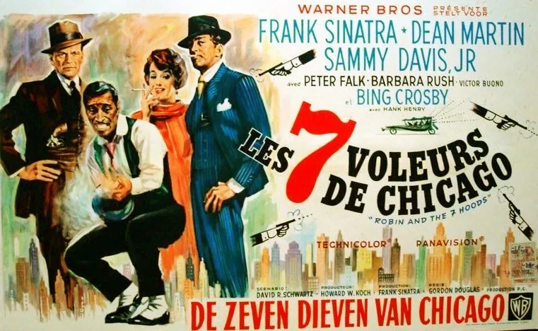 Près de dix ans après le succès de Blanches Colombes et Vilains Messieurs (Guys and Dolls), Frank Sinatra éprouve l’envie de se plonger à nouveau dans l’univers des « gangsters chantants ». Et cette fois, il n’a pas l’intention de se faire voler la vedette par un partenaire trop prestigieux, comme l’était Malon Brando dans le film de Mankiewicz. Pour Les 7 voleurs de Chicago (Robin and the 7 Hoods), Sinatra se veut seul maître à bord. En qualité de producteur, il présidera à tous les choix. Celui du réalisateur Gordon Douglas, un bon artisan dont l’autorité n’empiètera pas sur la sienne ; du chef opérateur William H. Daniels, qui signe l’image de ses films depuis Comme un torrent (Some Came Running) (comme ce vétéran le fit autrefois pour Garbo) ; et des compositeurs Sammy Cahn et Jimmy Van Heusen, de vieux compagnons de route. Bien sûr, c’est également Sinatra qui choisit les comédiens devant l’entourer. La présence de ses acolytes Dean Martin et Sammy Davis Junior n’étonne guère ; en revanche, celle de Bing Crosby, crooner de légende et rival de toujours, surprend davantage. Les deux acteurs qui se disputaient les faveurs de Grace Kelly dans Haute Société (High Society) se retrouvent donc dans Les 7 voleurs de Chicago., plaisante fantaisie qui sera aussi la dernière comédie musicale de Crosby.