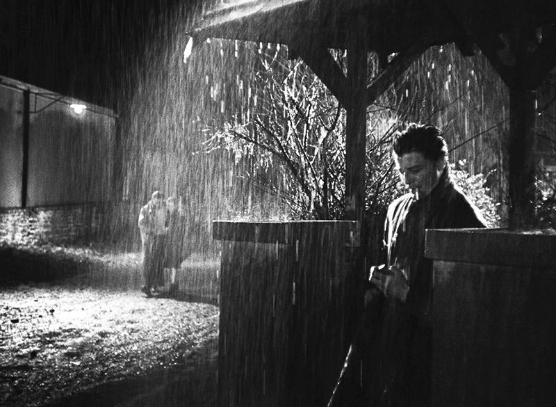La photographie d’Henri Alekan sublime cette atmosphère. Alekan, qui venait de signer les images féeriques de La Belle et la Bête, trouve ici un terrain plus âpre, mais tout aussi stylisé. Il sculpte les visages dans des clair-obscur d’une rare intensité, transforme les flaques en miroirs tragiques, fait de la pluie un voile dramatique. Chaque plan semble peser d’un poids moral et les intérieurs sont étouffants, les extérieurs menaçants. Le film devient ainsi un poème visuel de la fatalité, où la lumière ne révèle pas, elle condamne.
