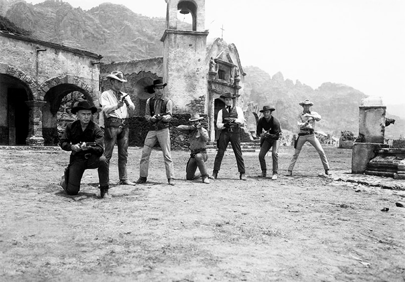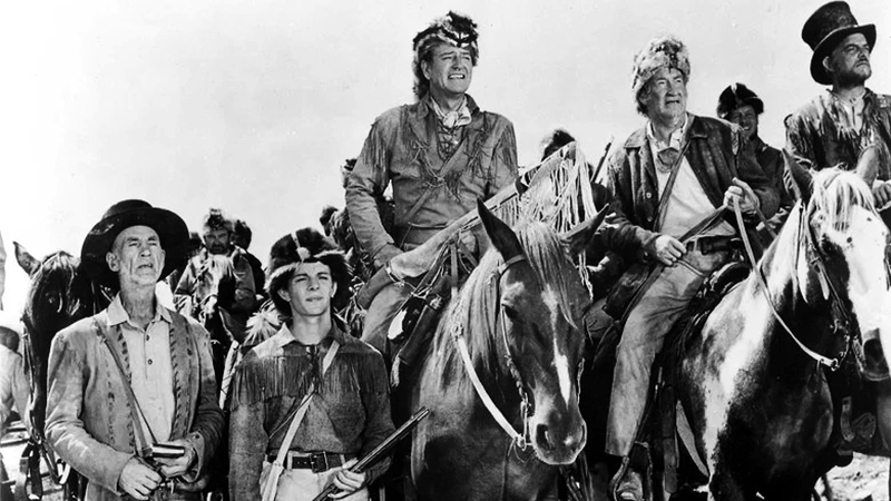 A la fin des années 1950, toutefois, le western est déjà sur le déclin. Une décadence amorcée avec Les Grands Espaces (The Big Country, 1958) de William Wyler, qui annonce de médiocres superproductions comme Les Sept Mercenaires (The Magnificent Seven) ou La Ruée vers l’Ouest (Cimarron), tous deux de 1960. La même année, symboliquement, John Wayne signe son premier film, le superbe Alamo (The Alamo) et l’un des derniers grands westerns traditionnels. [La grande histoire illustrée du 7ème art – Editions Atlas – 1982]