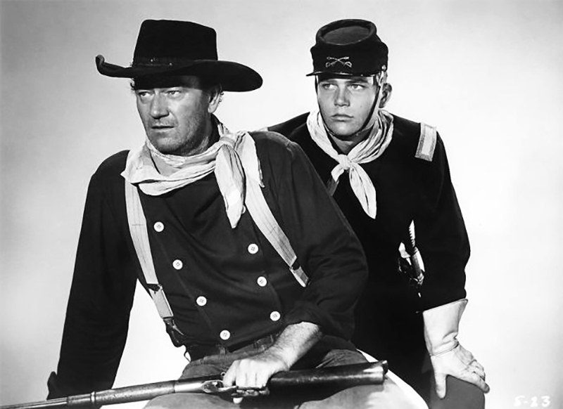 C’est encore la Warner qui produit le dernier grand western de la décennie, Rio Bravo (1959). Plus de dix ans après La Rivière rouge, Howard Hawks retrouve John Wayne pour un chef-d’œuvre dont le classicisme apparent recouvre une très grande spontanéité et un ton remarquablement moderne dans les rapports entre les personnages. Hawks, qui n’a pas apprécié Le Train sifflera trois fois, a décidé de faire un retour aux sources : « Nous nous prenons trop au sérieux aujourd’hui ; il faut avoir recours à l’ironie chaque fois que cela est possible. Je crois que dans Rio Bravo, on rit presque autant que si, dès le départ, nous avions décidé de faire une comédie… » Ce n’est peut-être pas un hasard si Hawks a fait appel à deux de ses scénaristes préférés des années 1940, Leigh Brackett et Jules Furthman ; en effet les relations entre John Wayne, homme mûr et attaché aux traditions, et Angie Dickinson, fille libre et volontaire, rappellent singulièrement les rapports de l’inoubliable couple Humphrey Bogart et Lauren Bacall.