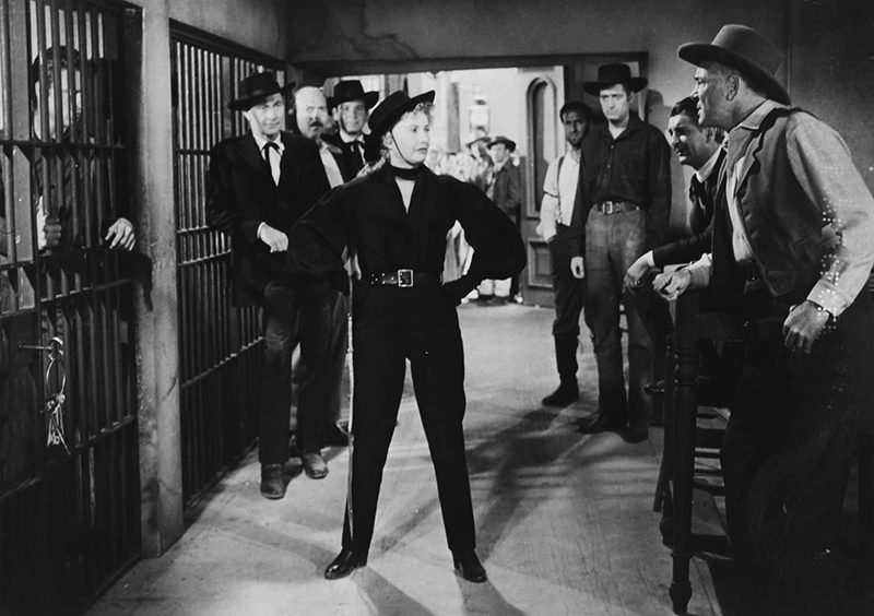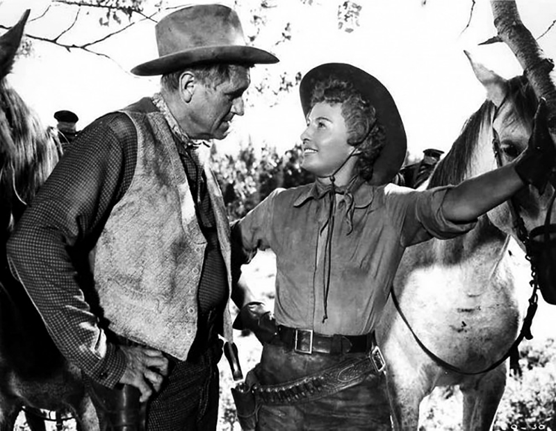 Côté féminin, le western propose de nouveaux personnages plus attachants, qui tranchent sur les stéréotypes traditionnels de la touchante et mièvre héroïne et de la femme fatale perverse et cupide. Jean Arthur fait ainsi un heureux retour à l’écran dans le rôle de la femme du fermier (Van Heflin) de L’Homme des vallées perdues. Deux des plus grandes vedettes des années 1930 et 1940, Marlene Dietrich et Joan Crawford, imposent à l’écran deux magistrales figures de femmes mûres, énergiques et fascinantes : Altar Keane, l’égérie des hors-la-loi de L’Ange des maudits (Rancho Notorious, 1952) de Fritz Lang, et Vienna, la tenancière du saloon de Johnny Guitar. Mis à part ces deux rôles romantiques et insolites, aucune actrice n’incarnera mieux les femmes fortes et « viriles » que Barbara Stanwyck, qui s’affirme comme vedette de western au milieu des années 1950 : citons La Reine de la prairie (Cattle Queen of Montana, 1954) d’Allan Dwan, Le Souffle de la violence (The Violent Men, 1955) de Rudolph Maté, La Horde sauvage (The Maverick Queen, 1956) de Joe Kane, et surtout Quarante Tueurs (Forty Guns, 1957), un western de Samuel Fuller qui combine intelligemment le noir et blanc et le Cinémascope, et où elle campe un inoubliable personnage de propriétaire de ranch despotique et impitoyable.