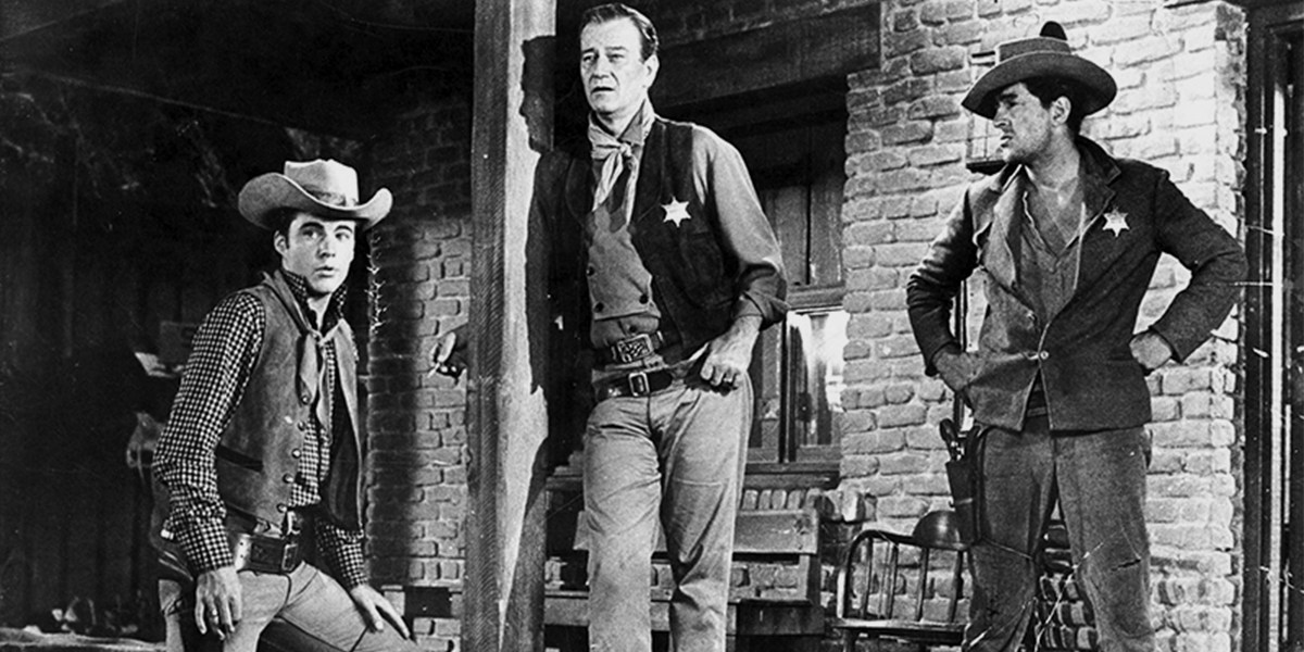 Western mythique, « Rio Bravo » montre un équilibre remarquable entre une histoire simple mais solide et une belle étude de caractères. Les relations entre les personnages et le groupe semblent être l’objet principal, chacun refusant de se laisser enfermer dans un schéma. Howard Hawks crée une relation particulière, pleine d’attentes et de sous-entendus, entre le shérif et la jeune Feathers, aidé par le fait que John Wayne était mal à l’aise face au charme et à la sensualité d’Angie Dickinson, beaucoup plus jeune que lui. Ce jeu de séduction, ainsi que les nombreuses touches d’humour, contribuent à cet équilibre quasi parfait.